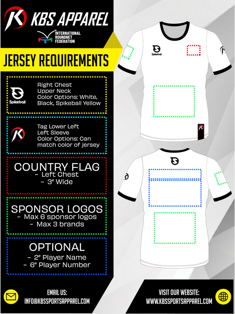We are proud to partner with the International Roundnet Federation for their 2024 season to bring players premium jerseys for the Roundnet Worlds! Check out Jersey Requirements below and be sure to order before the deadline to recieve your jersey in time for the tournament.